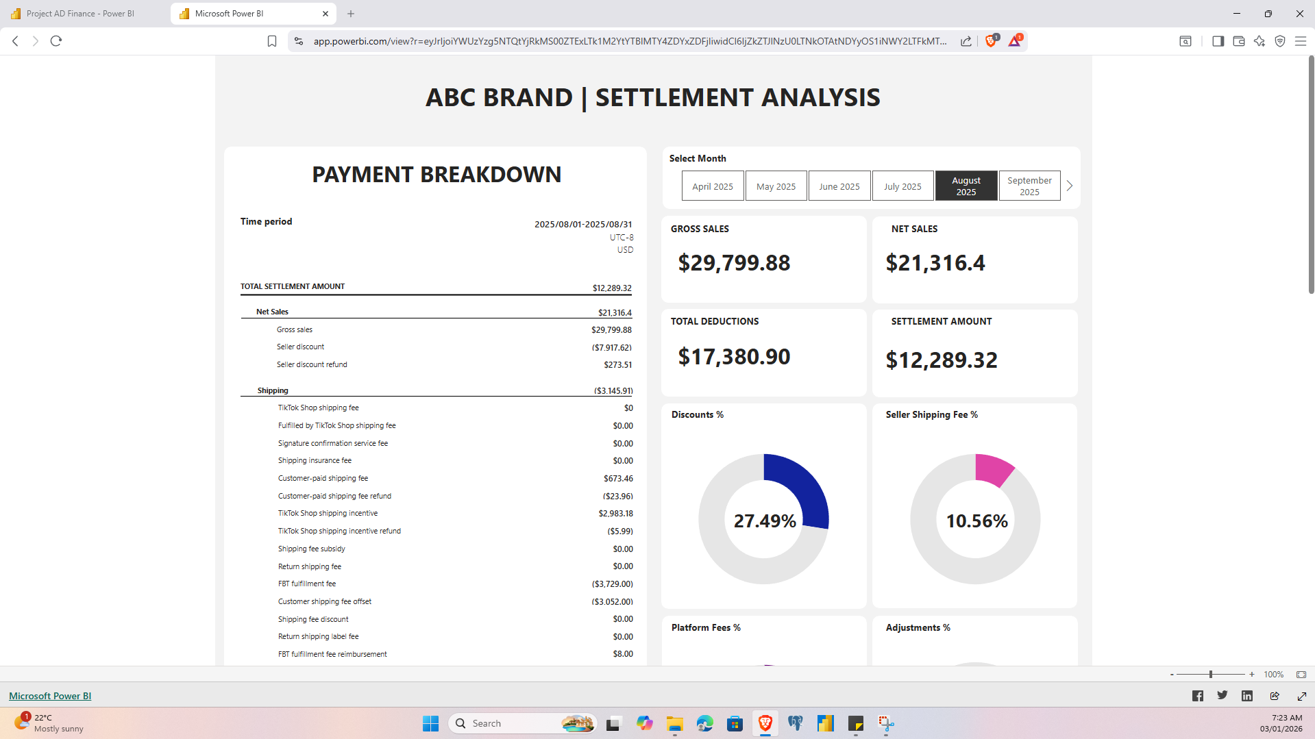 A financial intelligence dashboard focused on transaction-level revenue and cost breakdown analysis. It maps earnings, deductions, and settlement flows with structured visualization. Designed to eliminate financial opacity and margin confusion. The outcome is clearer profitability control.