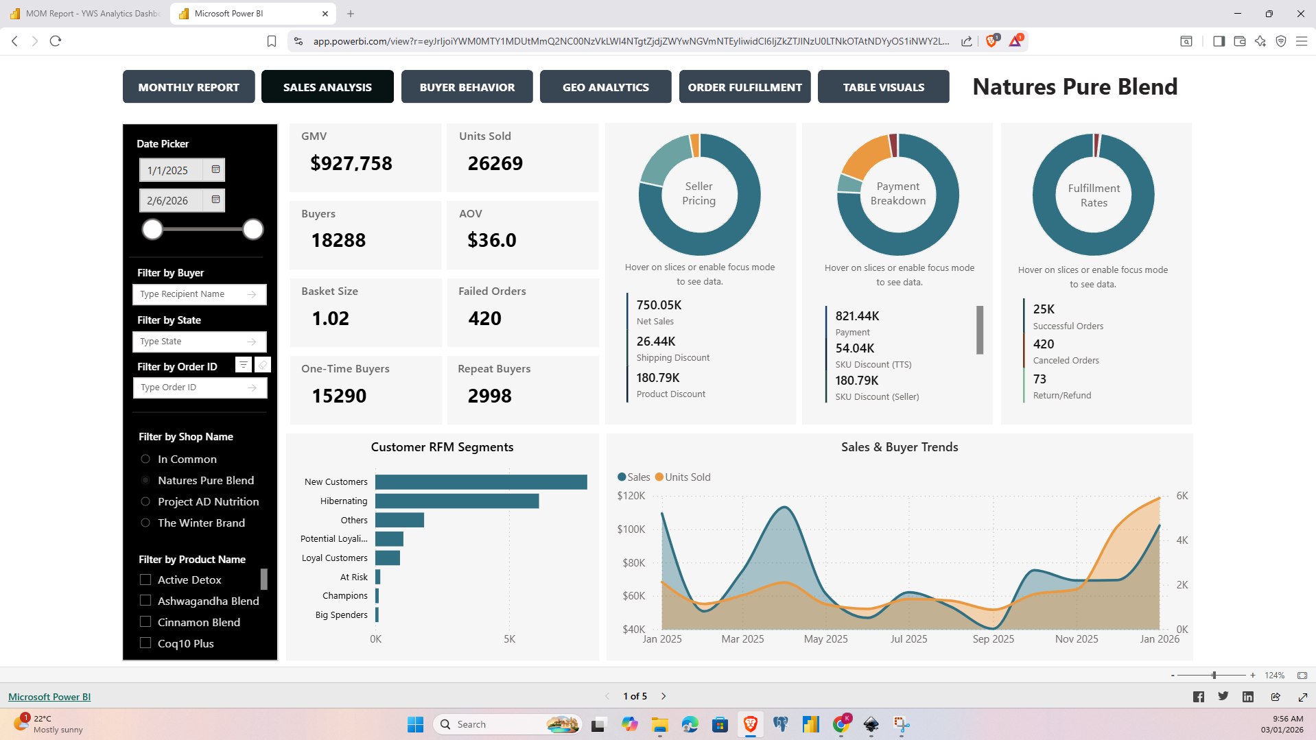 A PowerBI dashboard built to extend beyond TikTok Shop's native reporting capabilities. It visualizes transaction analytics, customer behavior, fulfillment performance, and geo insights in one unified view. Developed to solve limited operational visibility. The result is smarter, data-backed decision-making.
